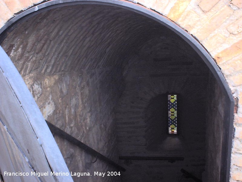 Muralla de Jaén. Torreón del Conde de Torralba. Saetera desde la murallaMuralla de Jaén. Torreón del Conde de Torralba. Puerta de acceso a la azoteaMuralla de Jaén. Torreón del Conde de Torralba. Escaleras de acceso a la azotea iluminadas por una saetera hacia intramuros