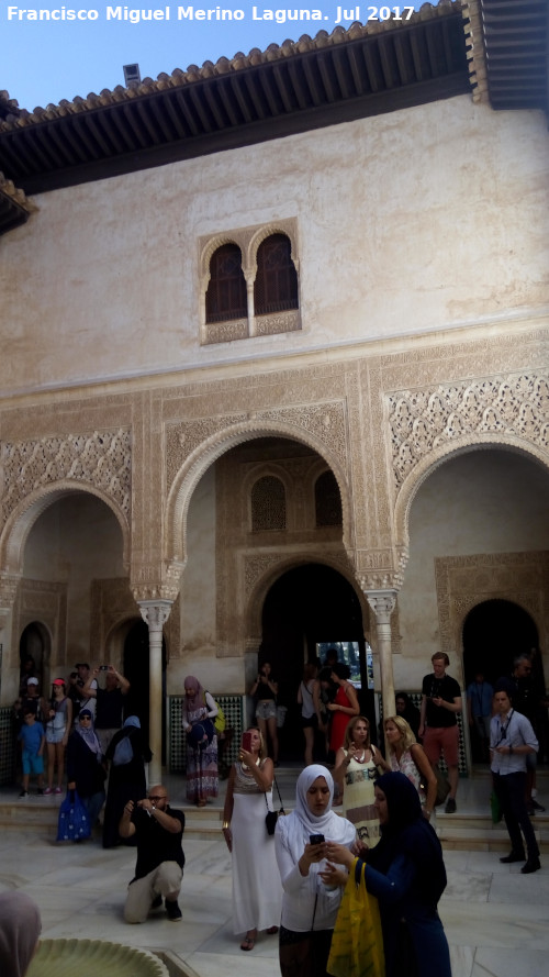 • A él da la Fachada de Comares (Alhambra. Fachada de Comares) y el Cuarto Dorado (Alhambra. Cuarto Dorado).