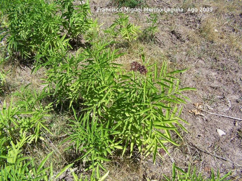 - Hojas opuestas, pinnadas, 15-30 cm de long., 5-9 folíolos con aroma fétido.