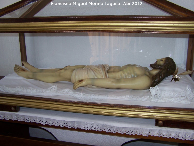 Con un arco de medio punto en la entrada y flanqueada por dos ventanas.