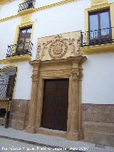 - Aún son apreciables la galería de arcos superior, la portada con columnas corintias y un sencillo entablamento y un escudo rodeado por guirnalda de frutos realizado en el s. XIX y que substituyó a otro de iguales características.