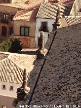 - Las ventanas superiores de este muro con ordenación paladina (triple ventana con dos huecos adintelados y de medio punto el central) y rematadas con frontón cerrado son del último cuarto del XVI.